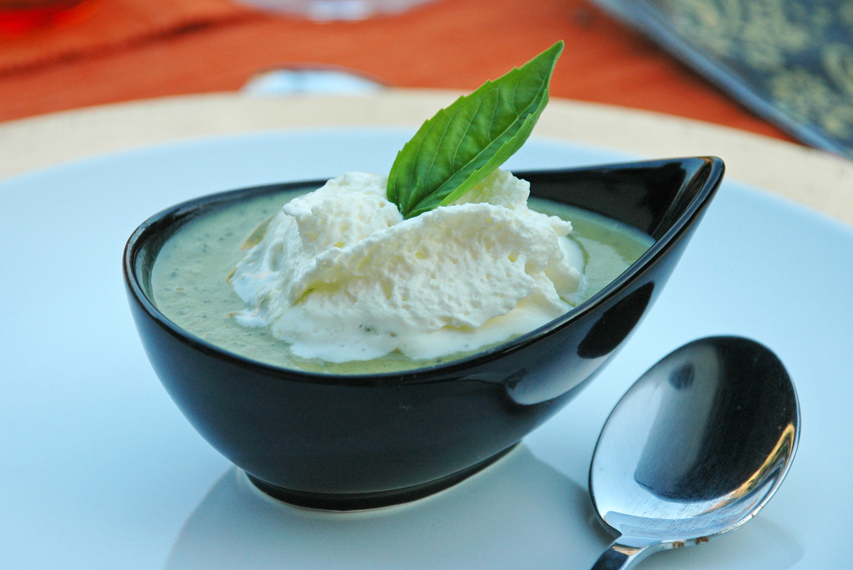 Je vous propose cette recette comme variante pour le velouté de courgettes-basilic. Très simple aussi, cette solution permet une présentation du velouté qui claque encore plus et qui apporte un contraste chaud-froid bienvenu, surtout en ces périodes de grande chaleur…