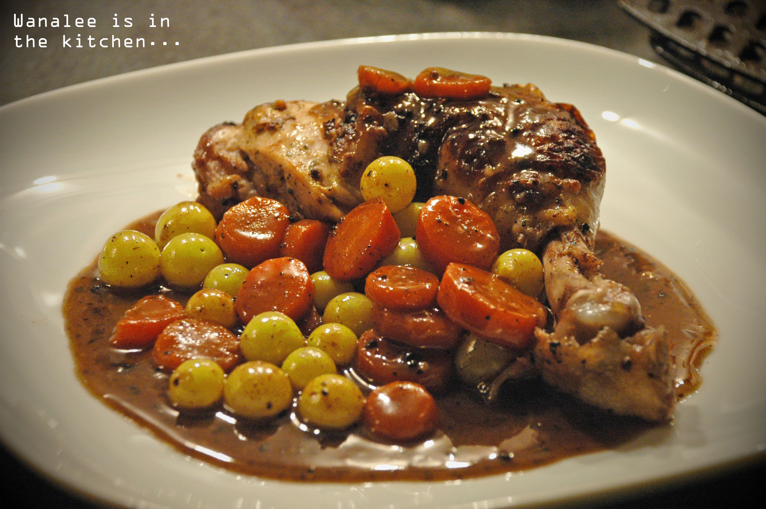 Une fois n’est pas coutume, je vous propose aujourd’hui une recette qui fleure bon la tradition. En effet, quoi de meilleur, après une bonne journée passée à vendanger, qu’un bon plat bien gourmand au raisin pour réchauffer l’ambiance fraîche de ces soirées d’automne ? Pas que je trouve qu’il fasse spécialement froid, mais étant en panne de chaudière ces jours (donc pas d’eau chaude ni de chauffage…), je suis forcée d’user de stratagèmes plus ou moins orthodoxes pour ne pas qu’on se gèle la canine gauche.