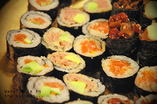 Comme je suis certaine que tout le monde a déjà testé avec un succès absolu ma recette de sushis d’hier, je remets le couvert sans plus attendre (pendant que vous êtes encore chauds, faudrait pas que vous vous fassiez un claquage ) pour vous proposer une recette des plus inattendues mais qui a fait ses preuves: les sushis au thon… et mayo. Oui mais avec du thon en boîte.
