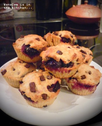 Remplir les moules à muffins de pâte jusqu’à mi-hauteur. Garnir de cerises en les enfonçant avec les doigts dans la pâte. Compléter les moules avec la pâte restante.