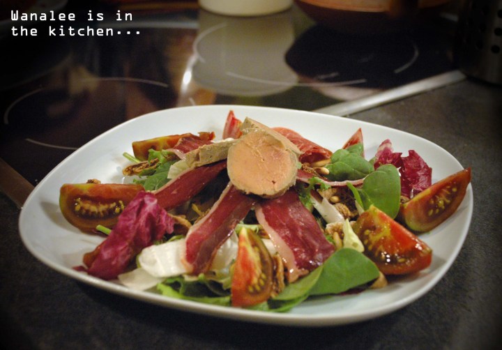 Enfin l’été se décide à se ramener. On a failli attendre, j’ai envie de dire !! Alors vite, on sort les tables de jardin, le grill, la jolie nappe fleurie et les lanternes et on profite des repas en plein air avant que l’automne ne pointe le bout de son nez… Mais bon, vous commencez à me connaître: je suis vraiment très gourmande. Alors quand il s’agit de proposer une salade (de rigueur avec ces températures !), je ne peux pas m’empêcher d’y ajouter plein d’excellentes choses très pas toujours franchement vertes… Mais bon, quand vous aurez goûté, vous me pardonnerez !