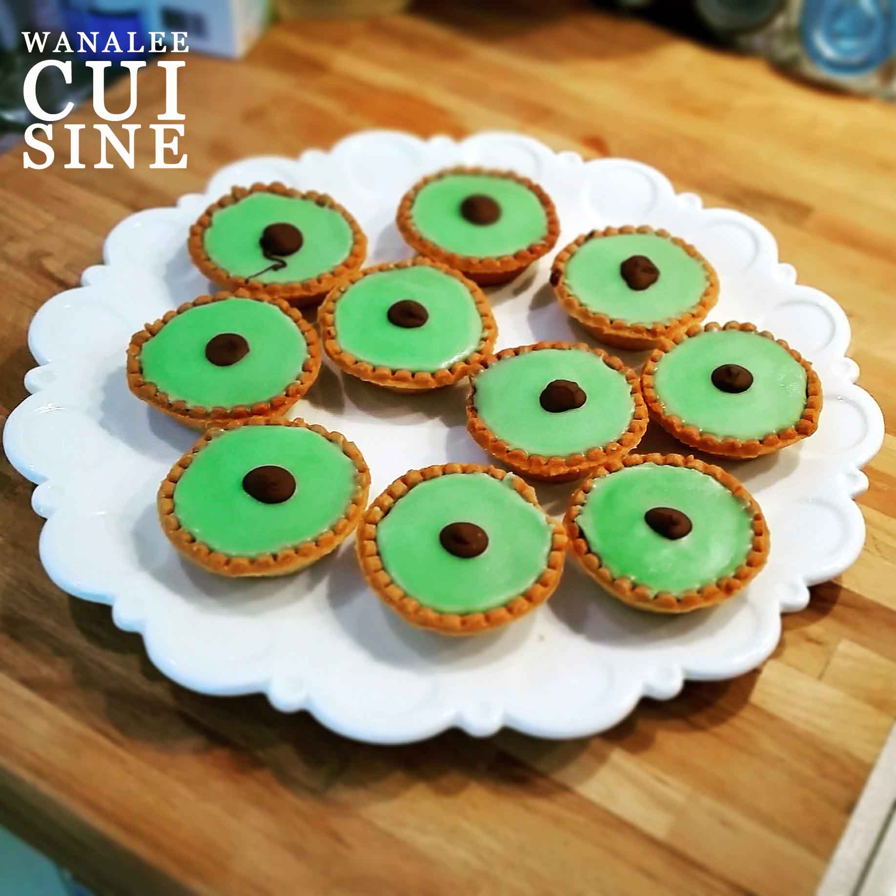 Au moment de glacer les tartelettes, préparer le glaçage (pas avant, sinon il sécherait dans le bol). Pour cela, mélanger le sucre glace avec le jus de citron, l’eau et le colorant. Travailler à la cuillère jusqu’à obtenir la consistance d’un ruban épais. Normalement, vous ne devriez pas avoir besoin d’ajouter plus d’eau.