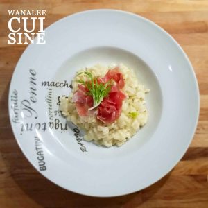Risotto au fenouil et citron, chiffonnade de pata negra