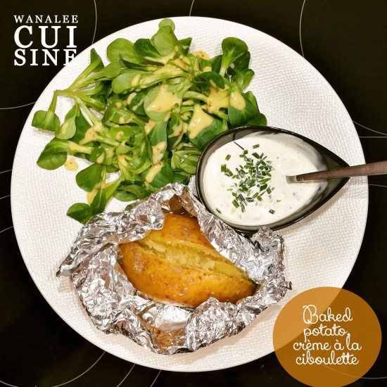 Servir avec les baked potatoes avec la crème à la ciboulette.