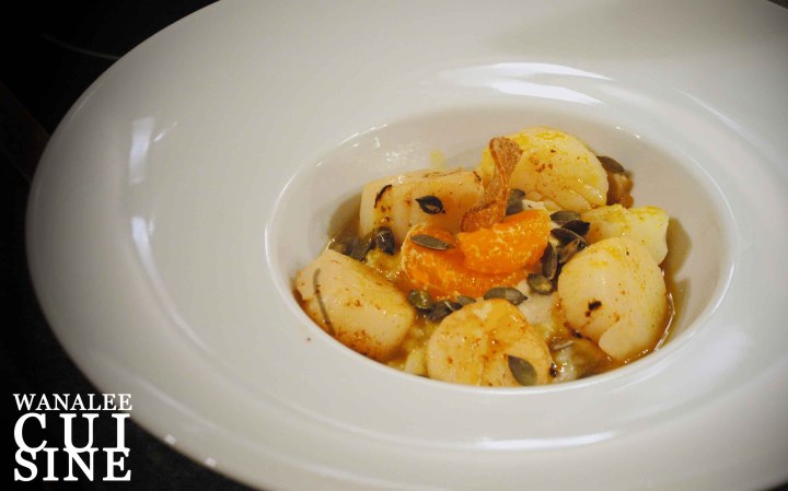 Agrumes: quelques zestes d’orange et de citron avec un trait de jus des 2 agrumes, sel et poivre.