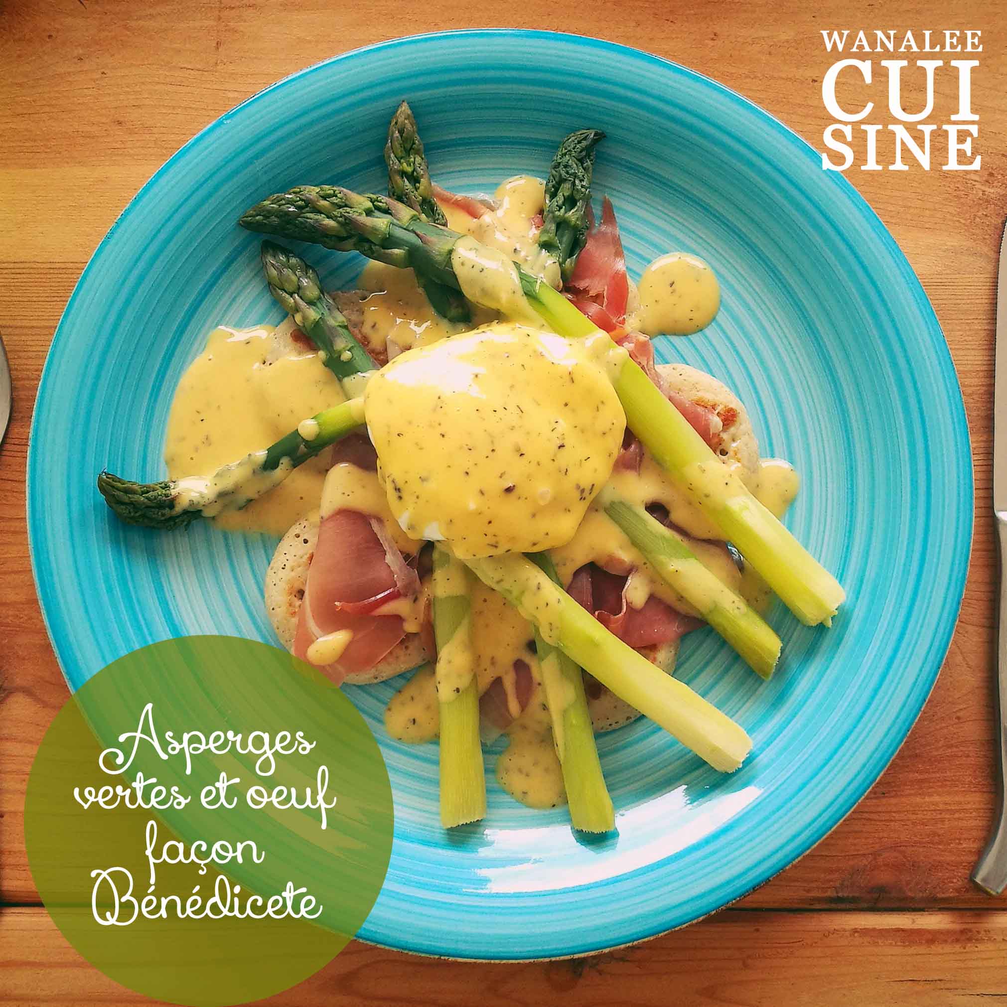 Couvrir les blinis avec les tranches de jambon, ajouter les asperges, puis déposer les œufs avant de napper de sauce. Servir sans attendre.