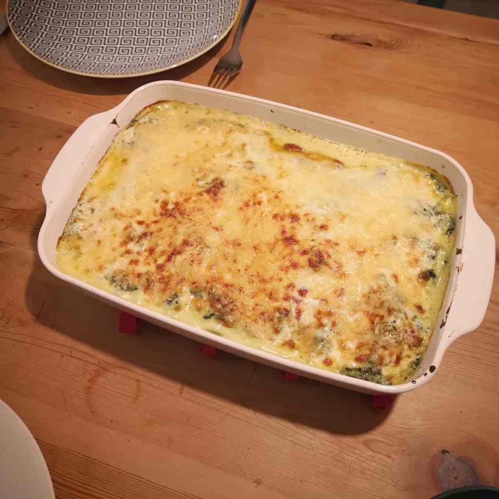 Beurrer un grand plat à gratin. Disposer une couche de sauce béchamel, puis une couche de pâte à lasagne, puis une couche de saumon et enfin une couche d’épinards. Parsemer de fromage râpé. Recommencer. Terminer par une bonne couche de fromage râpé.