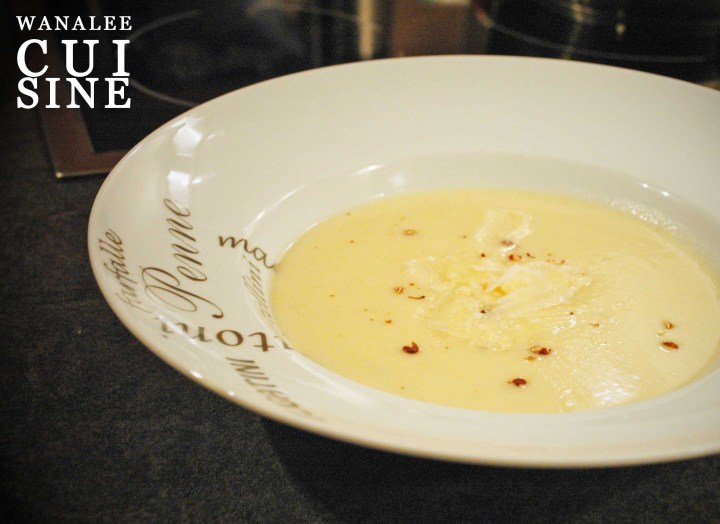 Ajouter la mozzarella coupée en petits morceaux et laisser fondre. Saler, poivrer, retirer le basilic. Mixer, puis passer au chinois pour que le mélange soit homogène.